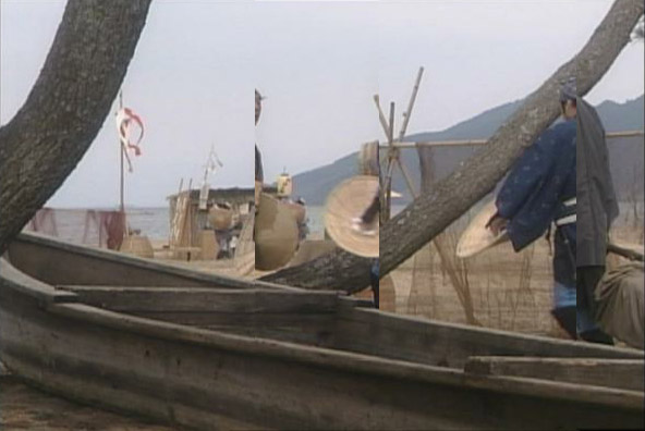 ★テレビ時代劇「水戸黄門(第28部)」の「第9話 関所を破る男装の密使」(2000年)の海岸は、「滋賀県近江八幡市佐波江町」の日野川の河口あたりの湖岸★