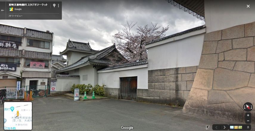 ★テレビ時代劇「長七郎天下ご免!」の「第44話 恋も一途の仇討奉公」(1980年)のお城は、「京都市右京区太秦東蜂岡町」の東映太秦映画村の大手門横★