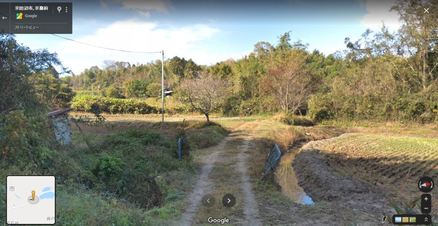 グーグル・ストリートビューの画像。奥に小さく小屋が見えている。