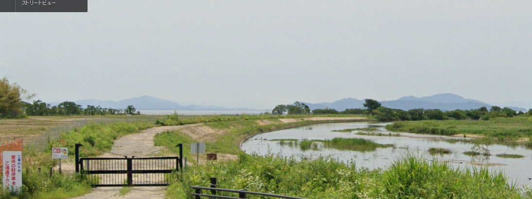 | グーグル・ストリートビューの画像。湖岸までストリートビューが到達していないため、県道304号の鴨川沿いから取得した。 ↓ |