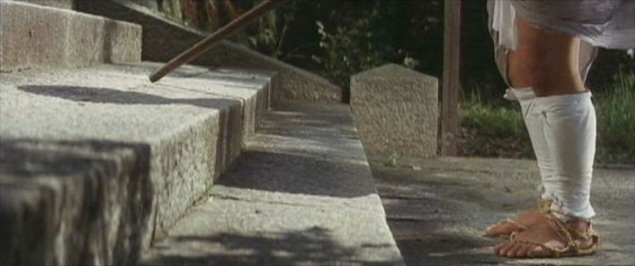 このシーン。今では石段両脇からの木々に覆われて薄暗い。