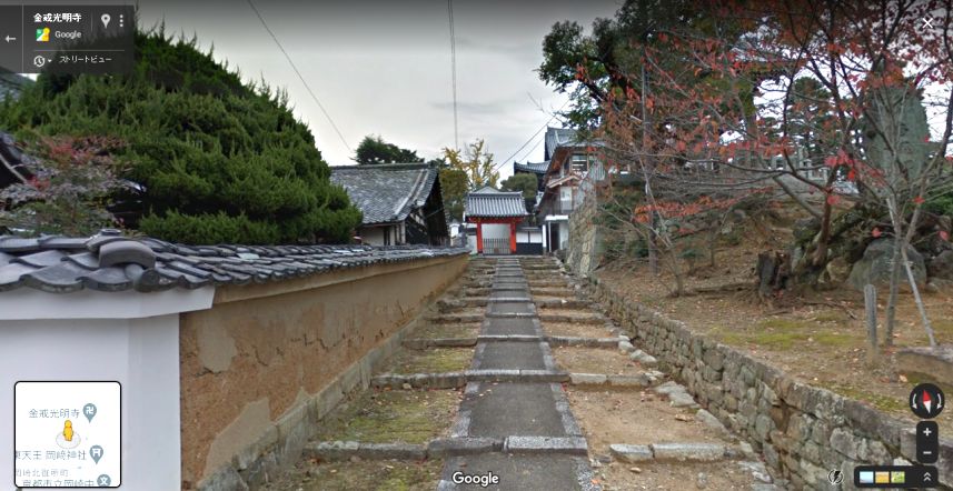 グーグル・ストリートビューの画像。ご覧の通り、山門は建て替えられている。