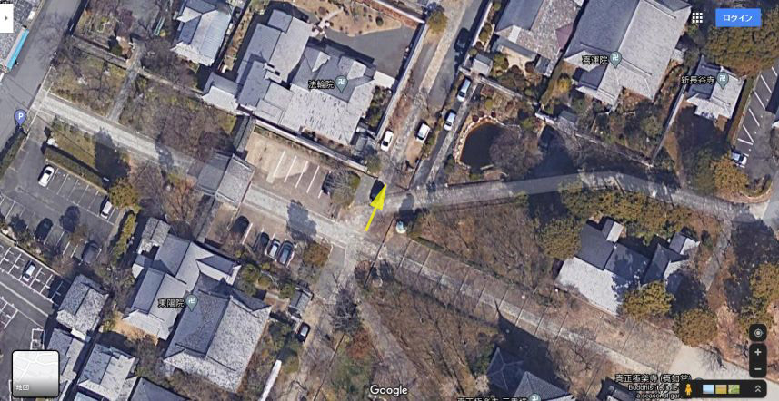 グーグルの空中写真。黄色い矢印方向に撮っている。