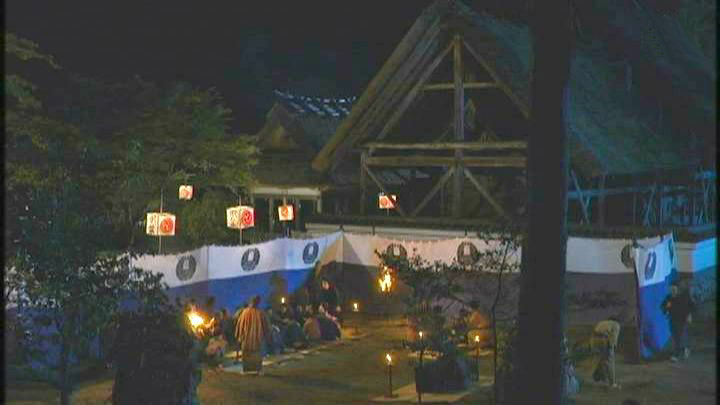 | 本殿の覆屋を横から見ている。奥に舞台が見える。 ↓ |
