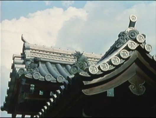 門内から見た総門の屋根。
