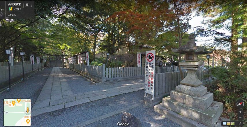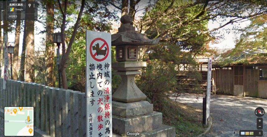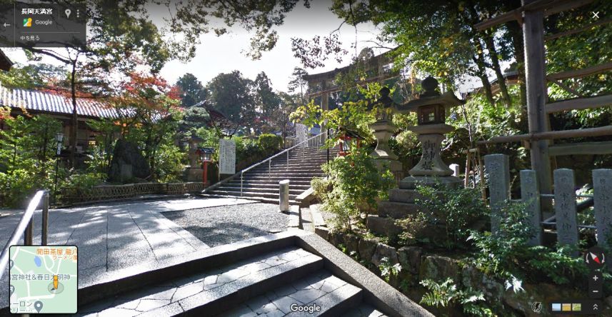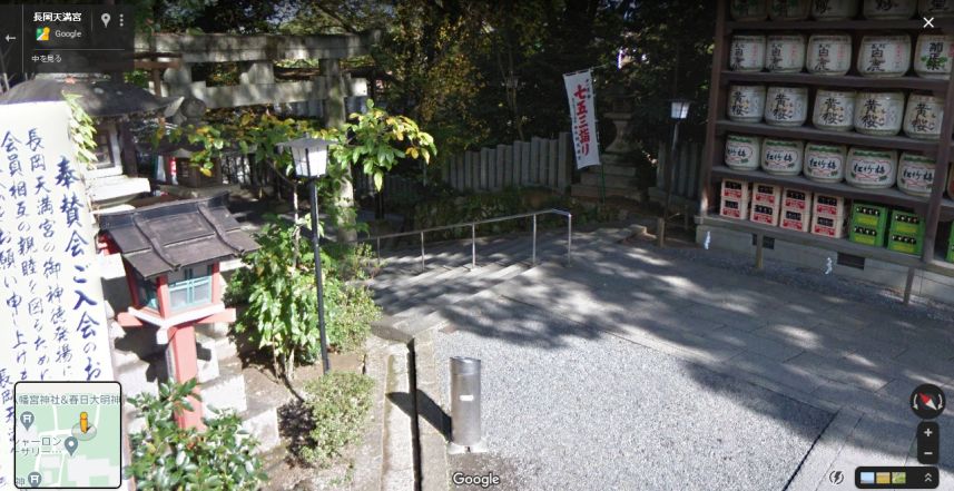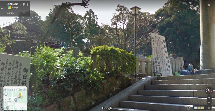 | グーグル・ストリートビューの画像。手前に石段があるので、このような見下ろした絵になる。石灯篭は移設された模様。 ↓ |