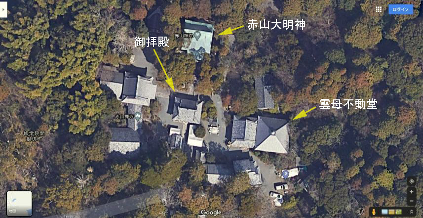 | まずはグーグルの空中写真による赤山禅院の現況。 ↓ |