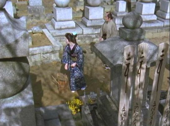 「必殺仕事人」のシーン。「闇を斬る!大江戸犯科帳」は、奥の墓石の向こうからこちらを撮っている。
