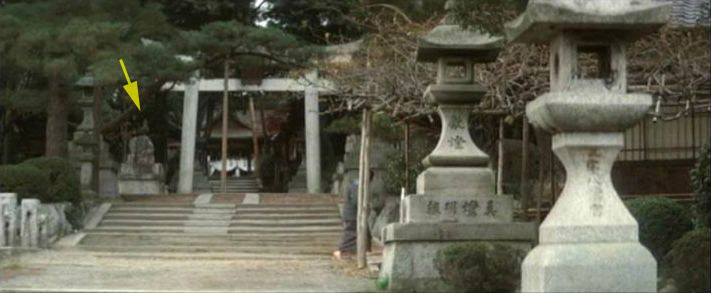 このシーン。矢印は鳩の狛犬(狛鳩)。向って右側にもある。