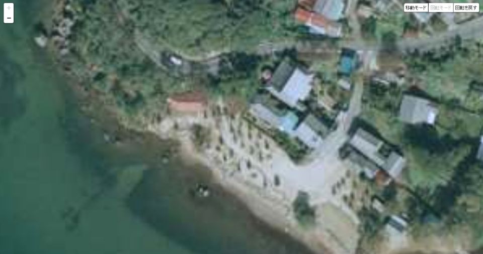 国土地理院の「国土変遷アーカイブ」による現地周辺の1982年撮影の航空写真。本編に映っている赤っぽい屋根の建物が見える。なおこの建物は現在存在しない。
