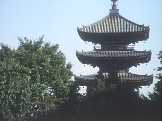 これは八坂の塔らしい。仁和寺や東寺のそれは、最上階の手すりに切れ目がある。