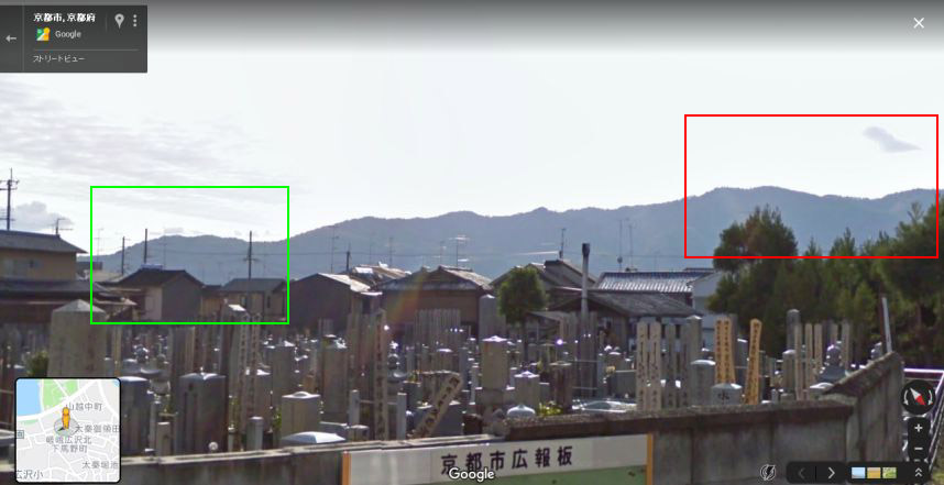 現地近隣のグーグルのストリートビューの画像。山並みが一致。