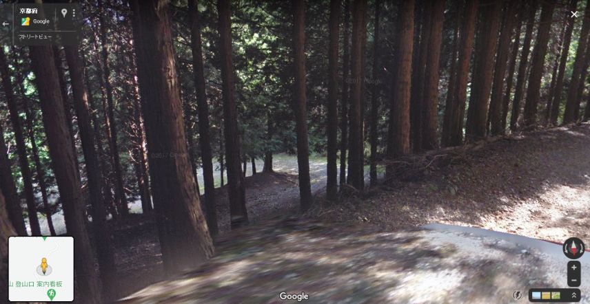| グーグルのストリートビューによる、切り通しへ下りる枝道の入口。 ↓ |