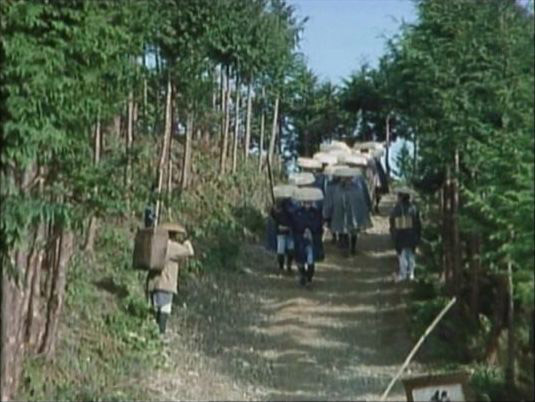 | 「清水次郎長物語」(1995年)のシーン。坂道を下ってくる。 ↓ |
