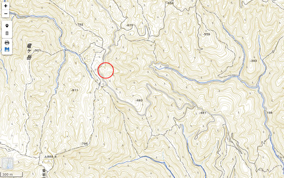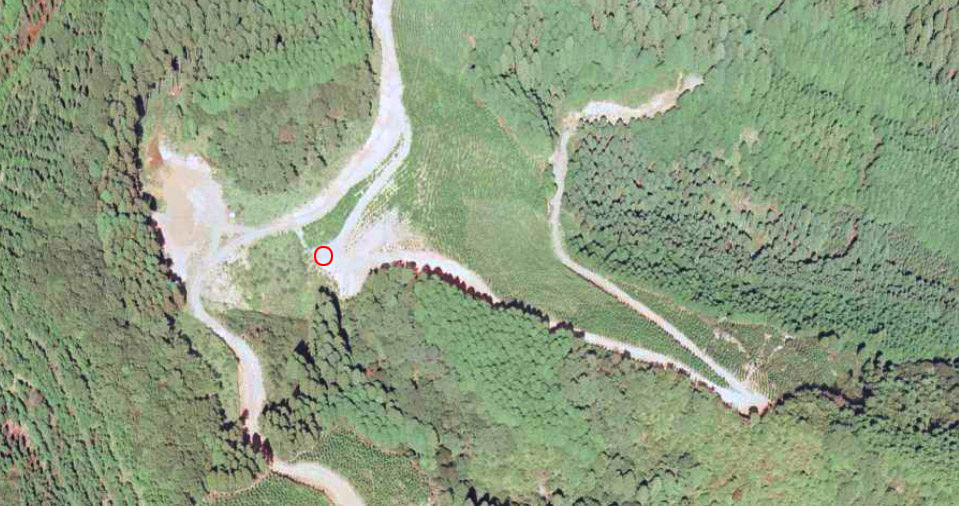 | 赤い円内が切り通しの推定地。ただし地図上には道路表記が無い。 ↓ |