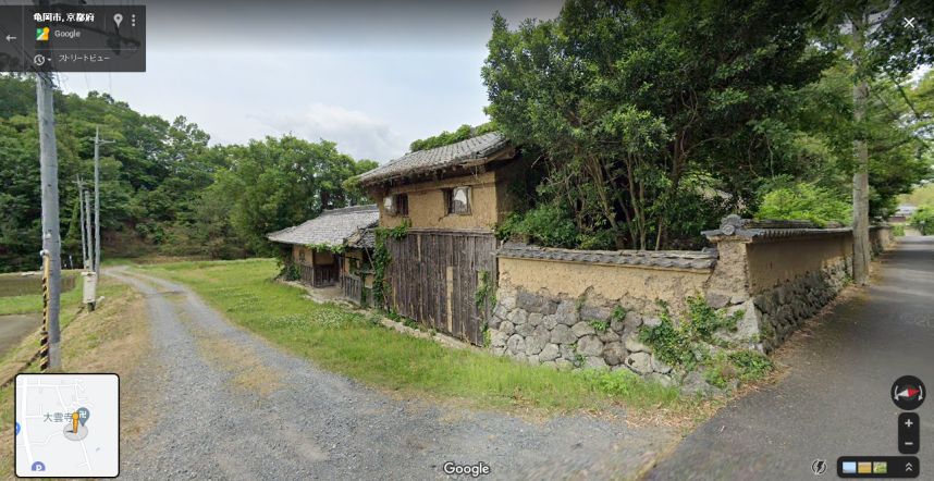 | グーグルのストリートビューの画像。右手の道路は両側に土塀が連なっていて、非常に雰囲気が良い。 ↓ |