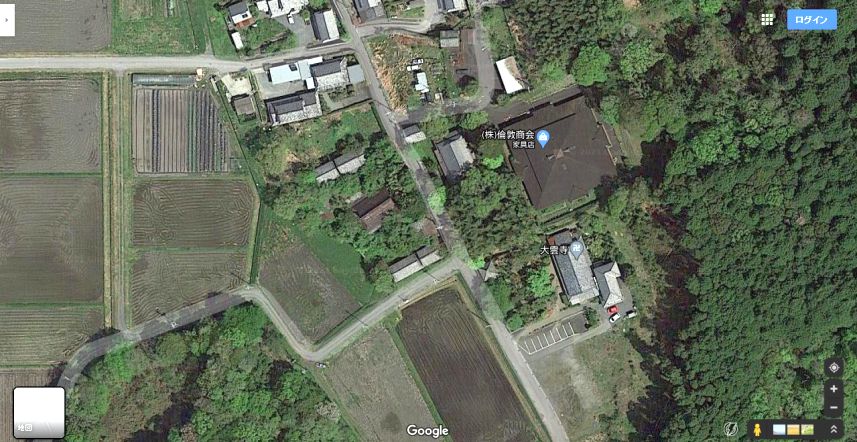 | グーグルの空中写真。中央のお宅がロケ地。 ↓ |