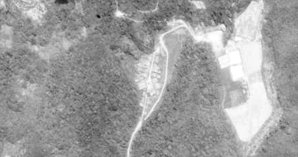 | 「みろくの里」の南部にあるセット。こちらは街中という設定らしい。国土地理院の「国土変遷アーカイブ」による現地周辺の1999年撮影の航空写真。 ↓ |