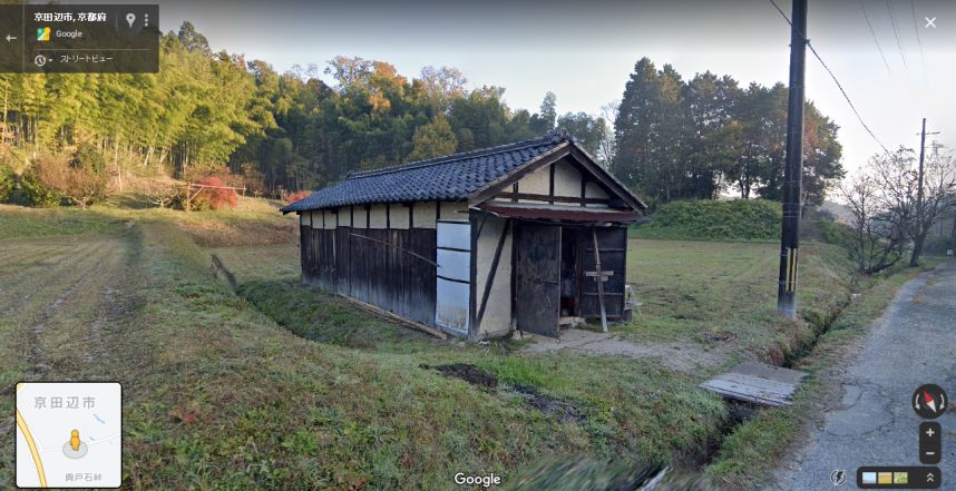 ★テレビ時代劇「水戸黄門(第19部)」の「第1話 (サブタイトルなし)」(1989年)の小屋は、「京都府京田辺市興戸大谷」(酒屋神社の少し西)★