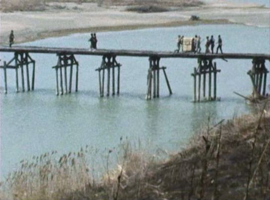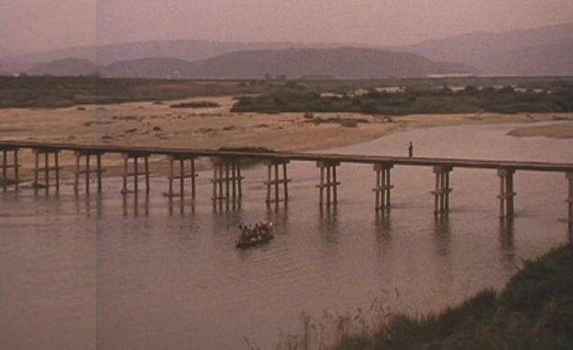 「水戸黄門(第6部)」の「第17話 若様替玉作戦」(1975年)の上津屋橋。コンクリート製に変更後の画像。
