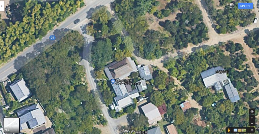 | グーグルの空中写真。本編は佐野籐右衛門邸を北東から見ていると思う。 ↓ |