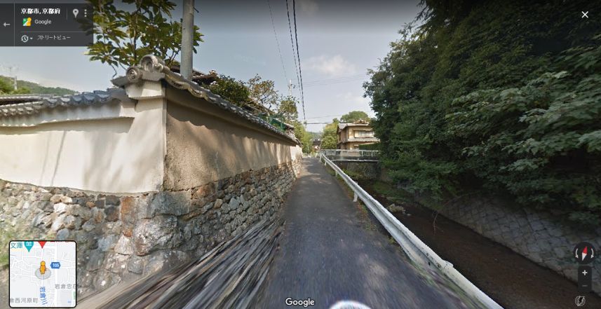 ★映画「新選組(三船敏郎版)」(1969年)の路地は、「京都市左京区岩倉上蔵町」の南東端の岩倉川沿い★