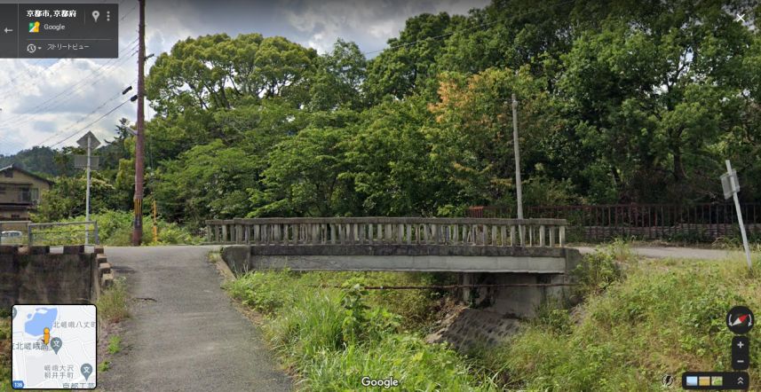 ★テレビ時代劇「遠山の金さん捕物帳(中村梅之助版)」の「第48話 牢を破った男」(1971年)の橋は、大覚寺南東の有栖川に架かる大澤橋だと思う★