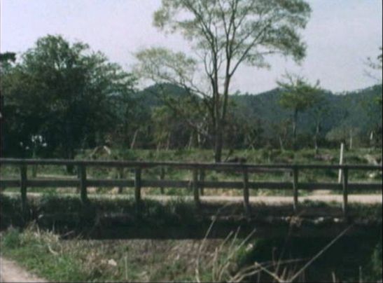 このシーン。奥に大沢池の土手が見える。遠景の山並みも現地と矛盾しない。