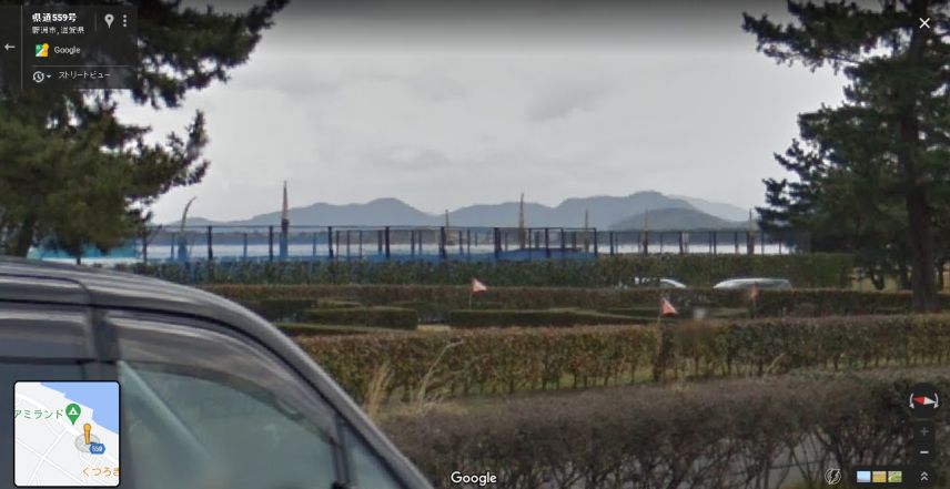 | グーグルのストリートビューの画像。現地は松並木が続いており、ここからしか画像が取得できなかったので違和感がある。 ↓ |