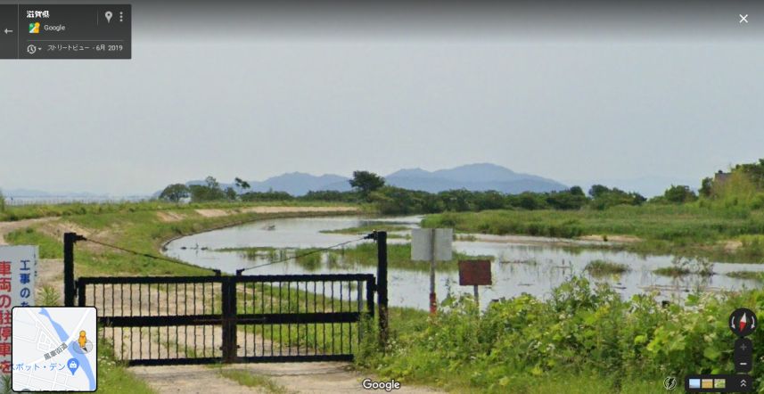 グーグル・ストリートビューの画像。湖岸までストリートビューが到達していないため、県道304号の鴨川沿いから取得した。ロケ地はもう少し東かと思われる。