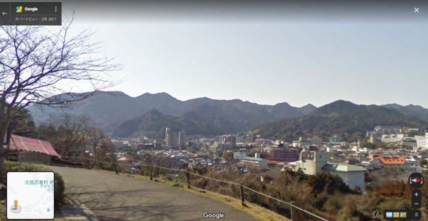 | グーグルのストリートビューの園内から見える山並み。 ↓ |