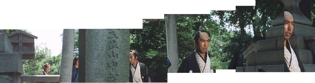 鳥居をくぐって境内に入ってくるシーン。(切り貼り合成画像)