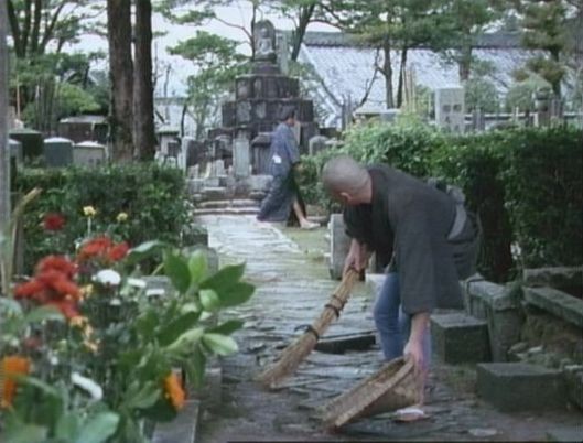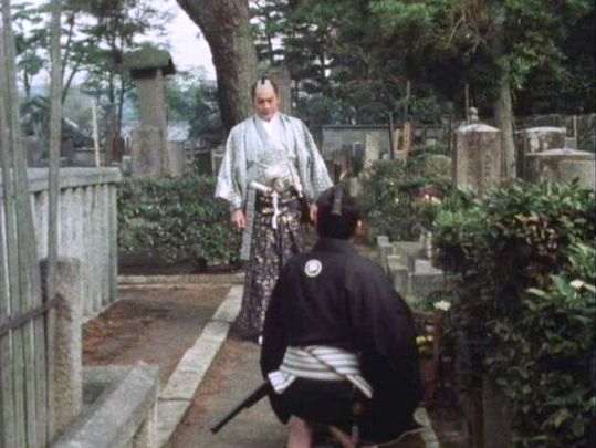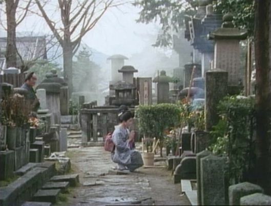 「銭形平次(大川橋蔵版)」の「第533話 ぶっつけ仁義」(1976年)のシーン。裏から無縁塚を見ている。奥に見えるのは金戒光明寺の御影堂。