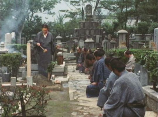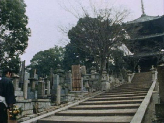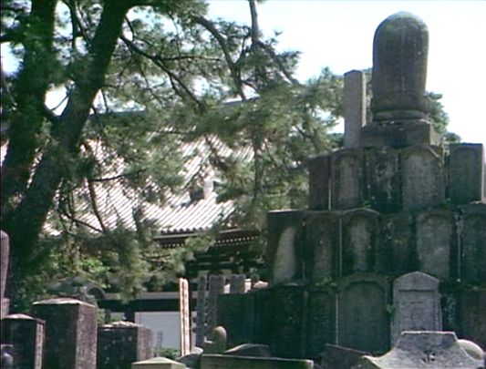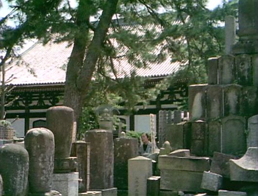 | −2022/07/27補足− 「銭形平次(大川橋蔵版)」の「第533話 ぶっつけ仁義」(1976年)のシーン。裏から無縁塚を見ている。奥に見えるのは金戒光明寺の御影堂。 ↓ |