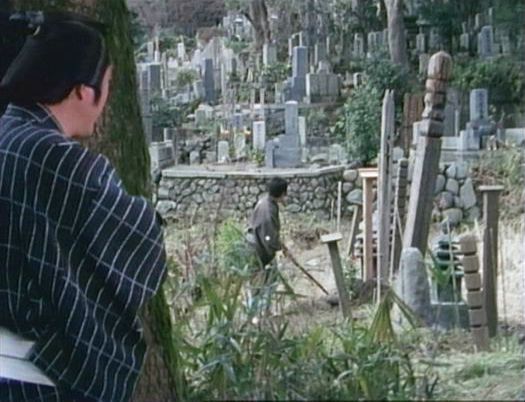 ★「名奉行 遠山の金さん(松方弘樹版)」の「第2話 女盗賊の三つの謎」(1988年)のお墓は、「銭形平次(北大路欣也版)」の