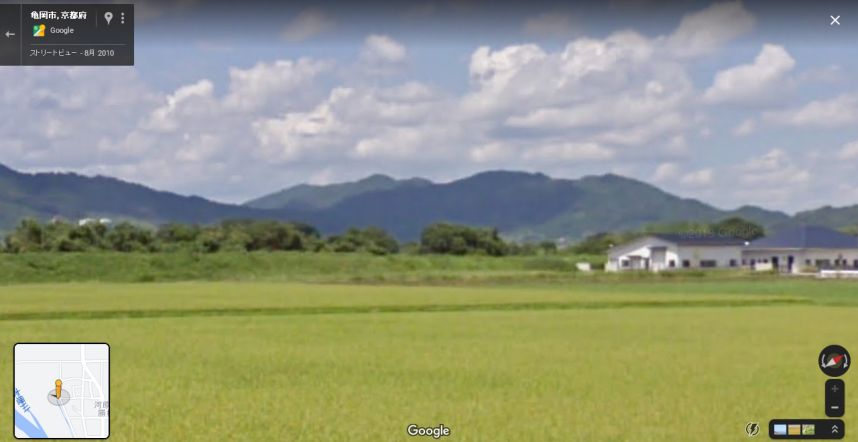 | 「河原林町勝林島岩渕」から取得したグーグルのストリートビューの画像。本編撮影は耕地整理前だったのであろう。 ↓ |