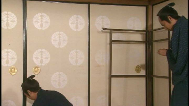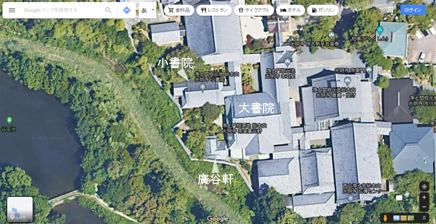 | こちらは大書院の北西の部屋かと思われる。襖の月影杏葉紋(つきかげぎょうようもん)が光明寺の寺紋と一致する。 ↓ |