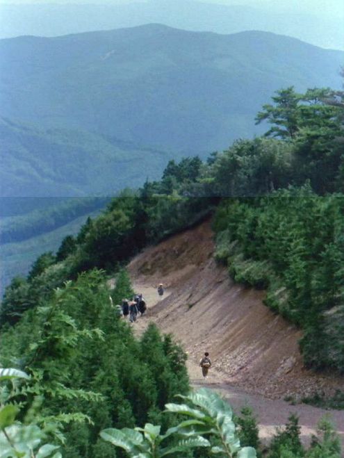 | 切り通しをやや下った所。比叡山が見える。 ↓ |