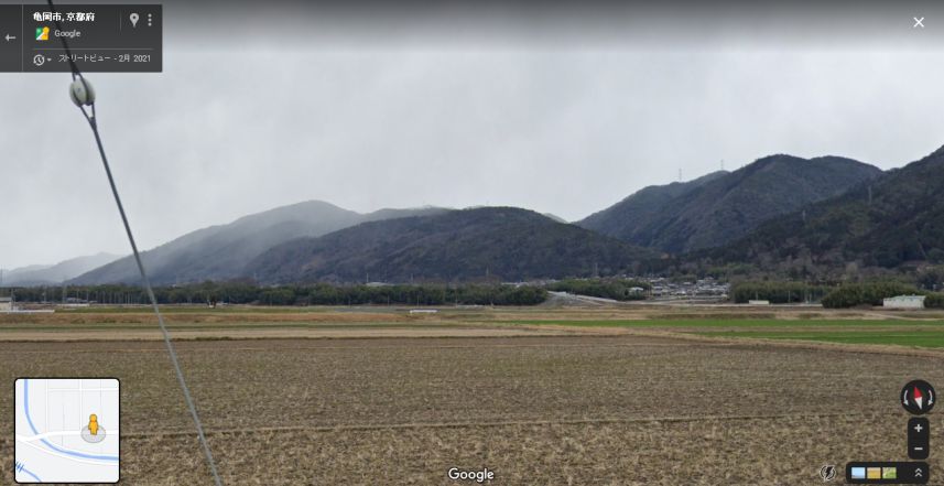 グーグルのストリートビューの画像。方向はこれで良いと思われるが、カメラ位置はもっと奥。
