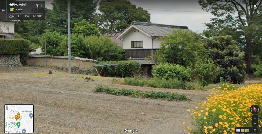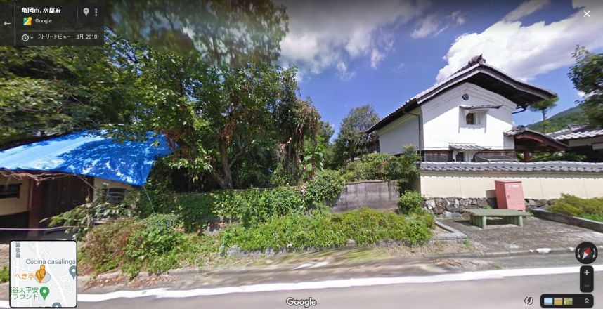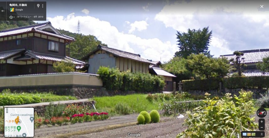 | グーグルのストリートビューの画像。左手の民家の建物は取り壊された。ちなみにここは「へき亭」のすぐそば。 ★注意:個人宅ですので、現地に行かれた場合には「勝手に敷地に立ち入る」「大声で騒ぐ」「無断で写真を撮る」など「非常識な行為」は慎んでください。 ↓ |