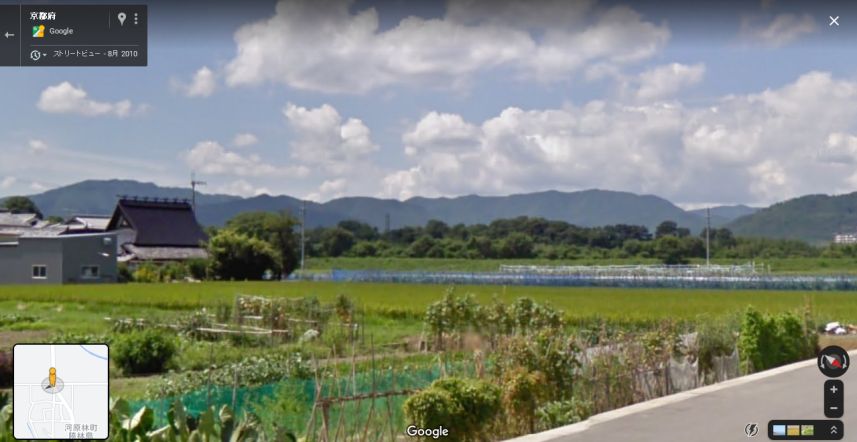 グーグル・ストリートビューの画像。奥の桂川の土手がロケ地であろう。