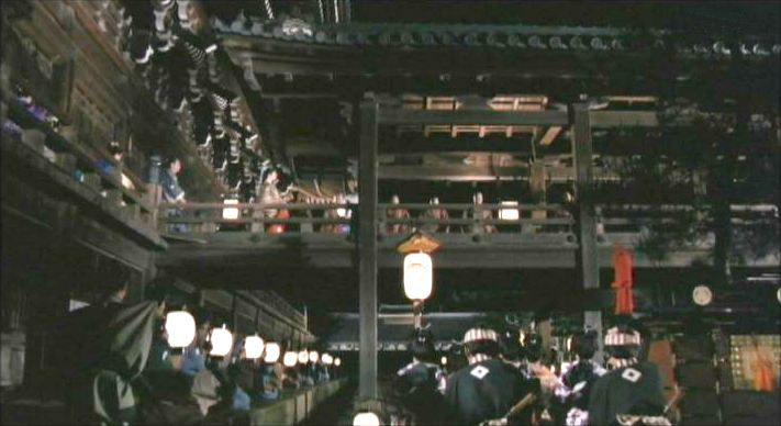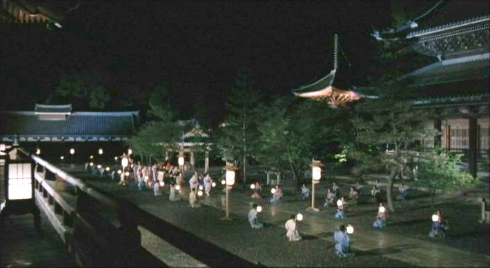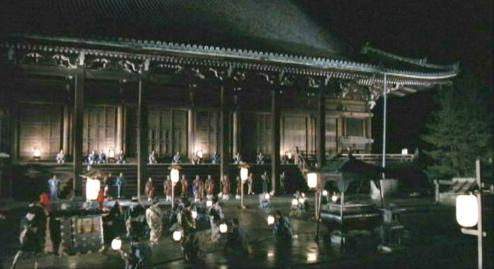 | 知恩院の御影堂西面から南を見る。右手に阿弥陀堂。わずかに朱の霊塔が見える。 ↓ |