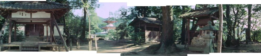 ついでにこれは大覚寺の五社明神。ぐるっと回る撮り方が珍しいので紹介。(切り貼り合成画像)