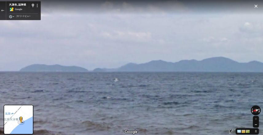 現地のやや南の湖岸から取得したグーグル・ストリートビューの画像。