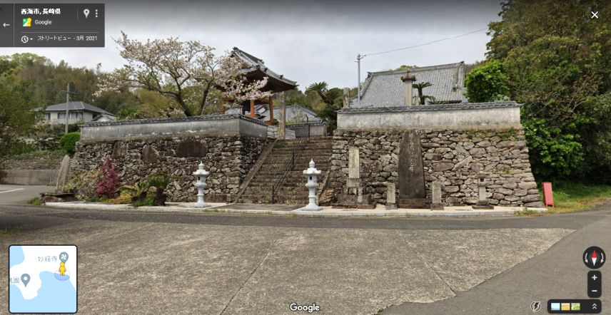 | 「長崎県西海市西彼町白崎郷」の妙経寺。石柱に「浦賀奉行所」の板を貼りつけている。 ↓ |