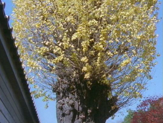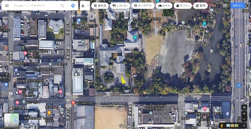| グーグルの空中写真。黄色い円内にある銀杏。 ↓ |