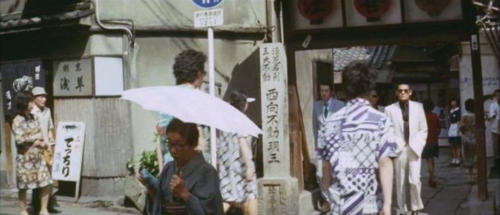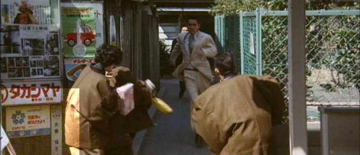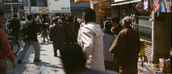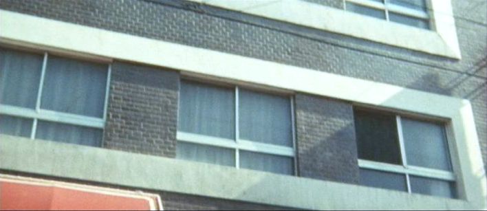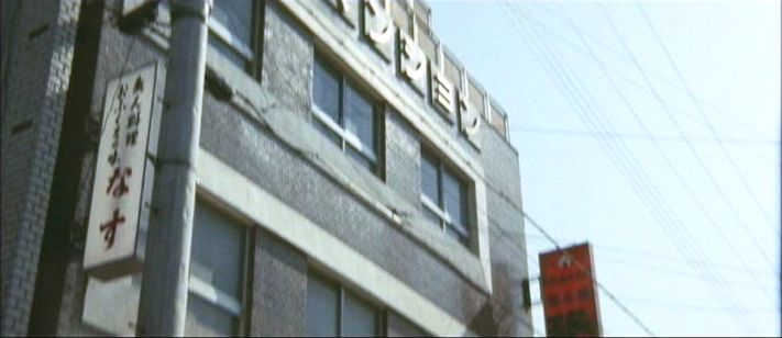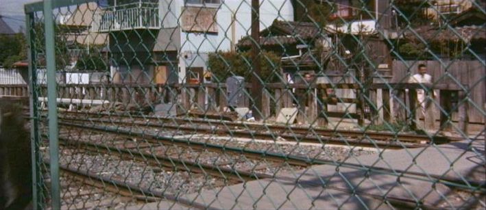 | 帷子ノ辻駅の南駅前かと思われる。明度を上げた町名標が「太秦帷子」のように思える。懐かしの「大阪万博マーク」も映っている。上の踏み切りと同じフェンス、駅の階段のアイボリーの壁も見える。 ↓ |