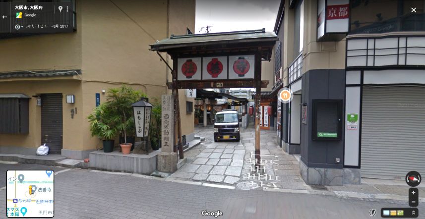 | 「大阪市中央区難波1丁目」のいわゆる法善寺横町。 ↓ |