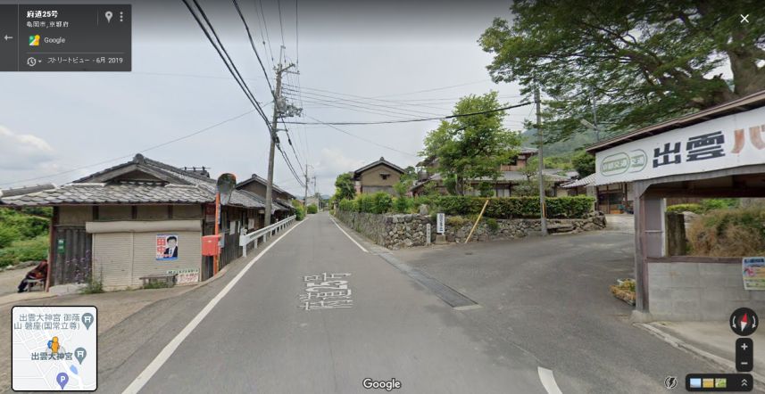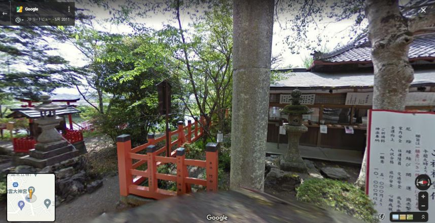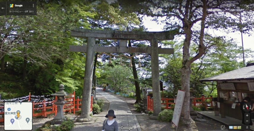 | グーグルのストリートビューの画像。鳥居内からの画像。石灯篭に注目。 ↓ |