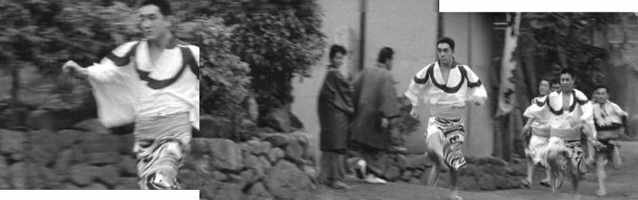 | 上のシーンの途中で映る石垣。(切り貼り合成画像) ↓ |